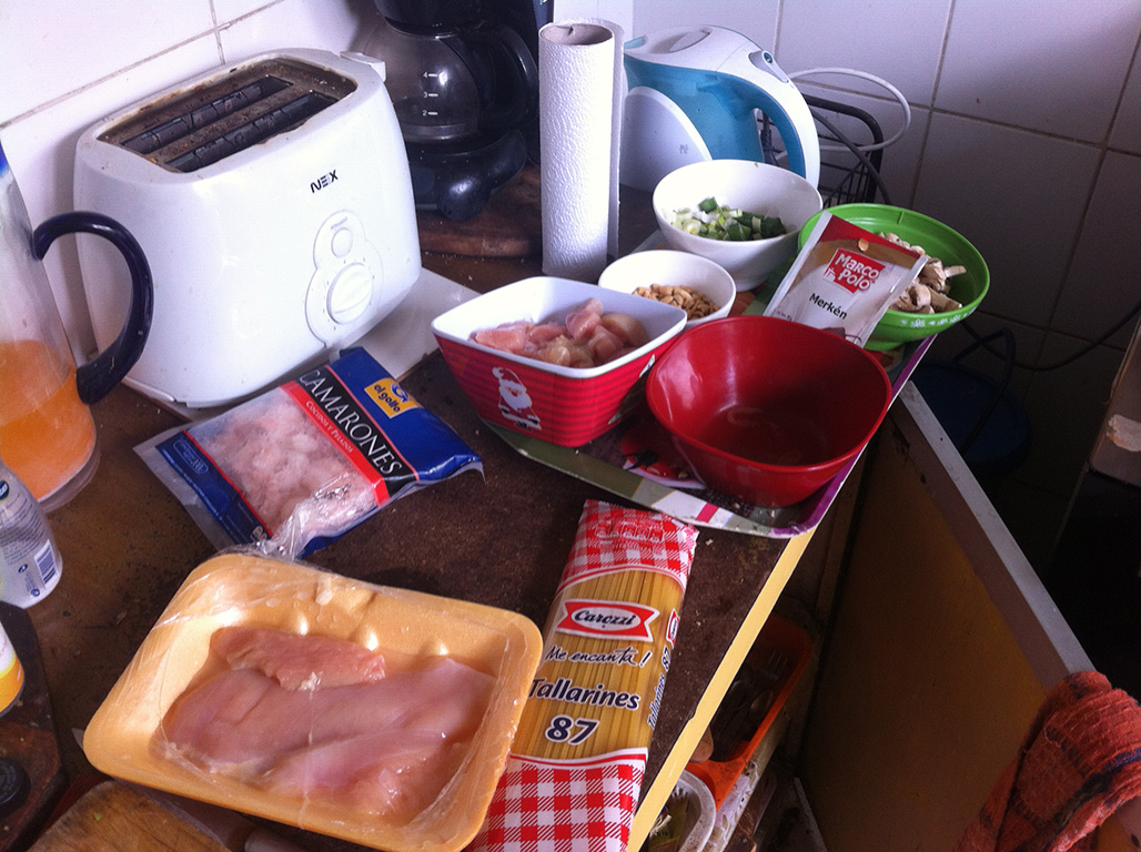 Pero los engranajes ya se empezaron a mover por lo que la operación “Tallarín Tailandés a la San Andrés” dio inicio, de esa manera luego de revisar lo que había en nuestra despensa y lo que se podía encontrar en el Unimarc (y lo que el presupuesto permitía) los ingredientes fueron: